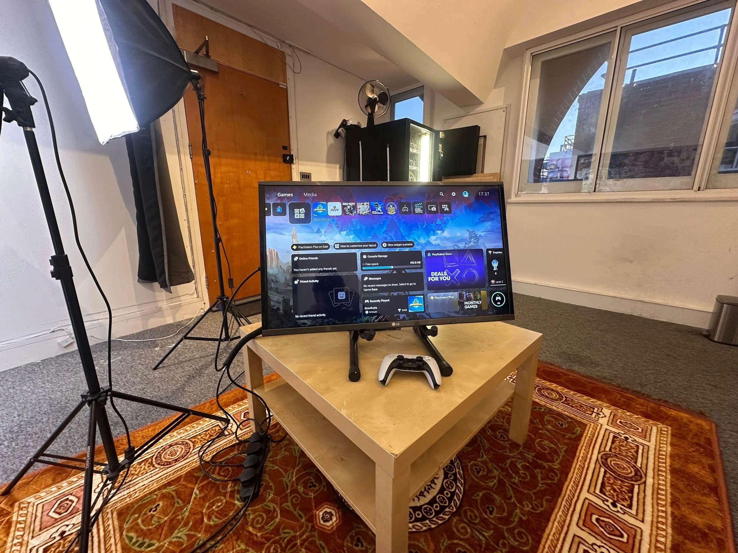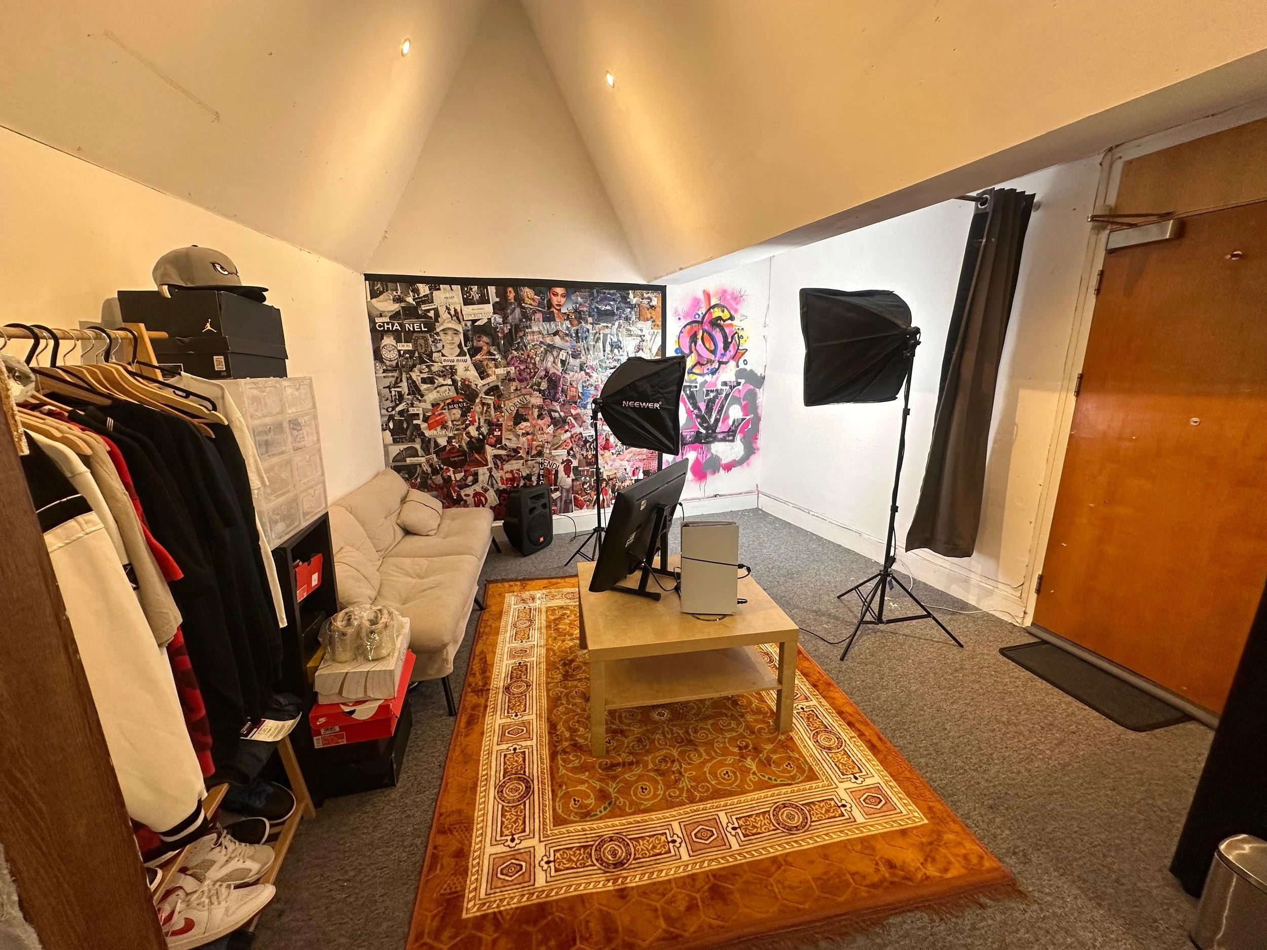 Photo/video space with lighting for reels & BTS.